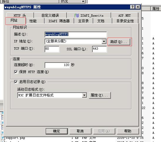 一、打开自己网站的“属性”,然后选择“网站”,“高级”。如图: